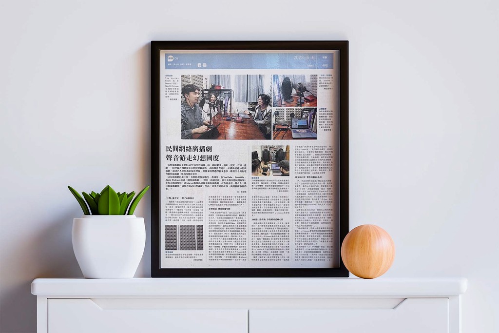 In May 2023, Ming Pao featured me as the sound producer and founding member of The Voices Room, our Hong Kong audio drama troupe. The article highlighted how we transformed a simple apartment into a studio with DIY acoustic treatments. It emphasized the detailed audio production I lead, including recording, mixing, and creatively using extensive sound libraries to convey emotion. Our efforts to reduce noise pollution during recording were also noted. We are dedicated to crafting immersive soundscapes that bring stories vividly to life and keep radio drama thriving in the digital age.