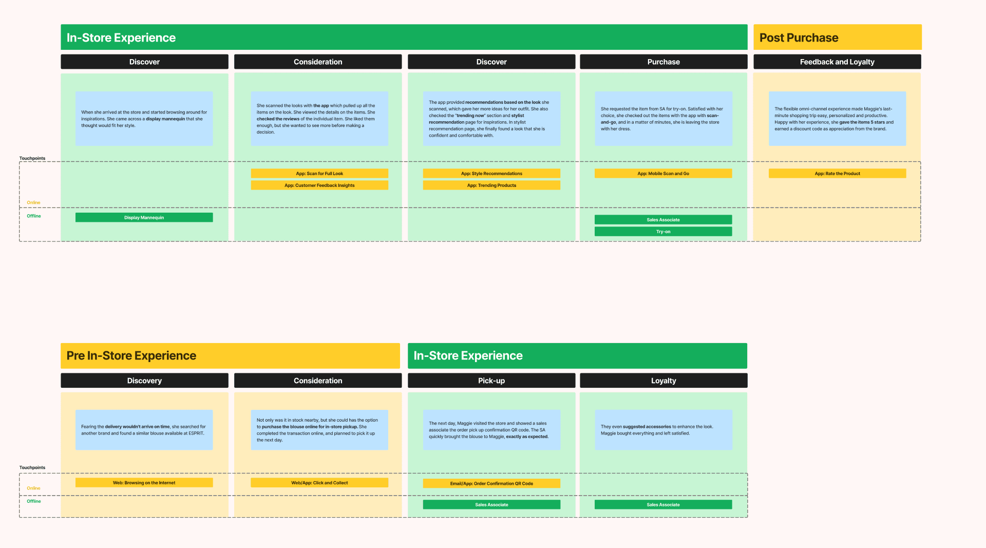Project Conclusion Amid Business Challenges: In mid‑2024, Esprit’s closure ended our omni‑channel project early. However, my research and our team's stakeholder outreach laid essential groundwork for proving its strategic value. The project strengthened my adaptability, resilience, and ability to connect user insights with business needs, leaving a legacy that may inspire future initiatives.