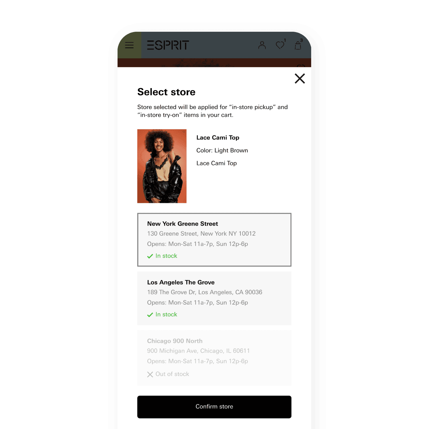In-store pickup/try-on